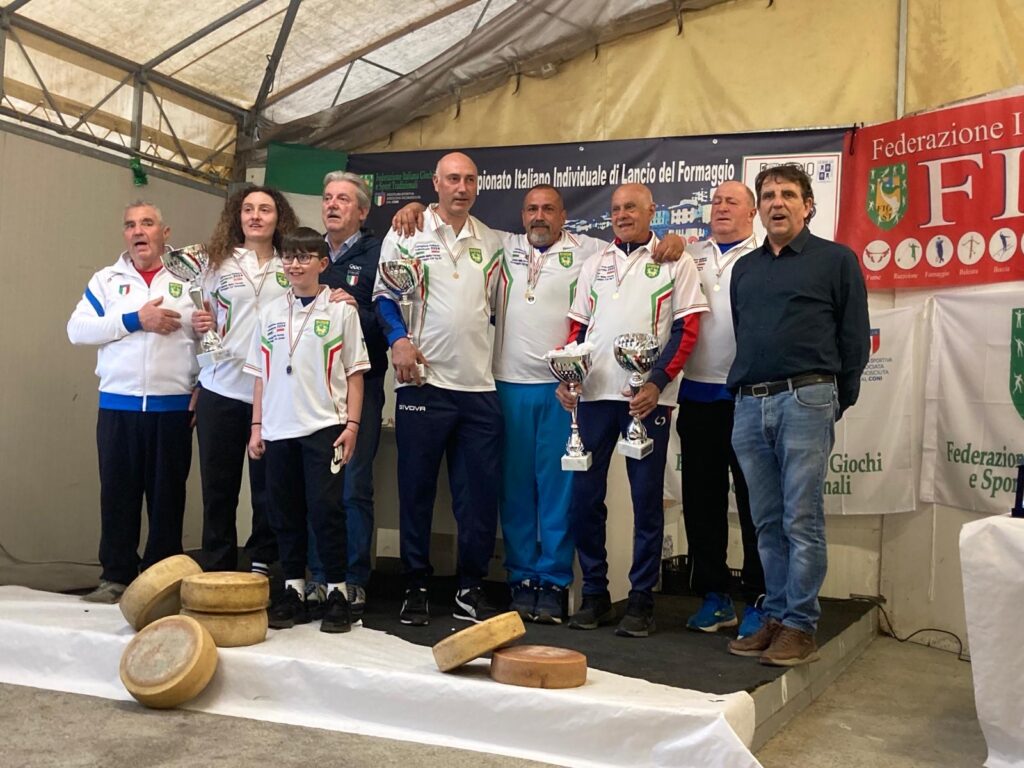 I lanciatori tifernati di forme di formaggio sul podio nazionale: incetta di titoli e medaglie ai recenti campionati italiani con ben due titoli tricolore, piazzamenti di riguardo e per la prima volta anche con le atlete. A Rignano sull’Arno sabato 23 e domenica 24 Marzo si è svolto infatti il Campionato Italiano del lancio del formaggio FIGEST. L’associazione ASD Altotevere capitanata dal presidente Norberto Petricci ha partecipato con una folta rappresentanza che ha conseguito risultati eccezionali nelle principali categorie di gioco. Gli atleti tifernati hanno partecipato alle gare delle categorie kg 1, kg 3, kg 6 e kg 9 maschili e categoria 3 kg femminile. Nella categoria 9 kg il veterano Sauro Martinelli è il nuovo campione italiano, terzo classificato Alessandro Pascolini e sesto classificato Massimo Giordani. Nella categoria 6 kg campione italiano Massimo Giordani, secondo classificato Domenico Nardi, quarto classificato Federico Morvidoni, quinto classificato Alessandro Bruschi, sesto classificato Alessandro Pascolini, settimo classificato Matteo Paradisi e ottavo classificato Sauro Martinelli. Nella categoria 3 kg quinto posto per Valter Carletti che ha partecipato anche alle gare per la categoria 1 kg piazzandosi al quarto posto. Infine nella categoria 3 kg femminile terza classificata Memé Pamela e quarta classificata Luana Battistoni. Il prossimo appuntamento con le gare di lancio del formaggio sará il 27 Aprile a Petrignano d’Assisi per il campionato italiano a coppie. Alla pluridecorata delegazione tifernate ed al presidente della L’associazione ASD Altotevere Norberto Petricci sono giunte le più sentite congratulazioni del sindaco Luca Secondi e dell’assessore allo sport, Riccardo Carletti. “L’associazione e tutti gli atleti e soci sono da sempre il vanto della nostra città e portano avanti con risultati straordinari e titoli italiani come questi ultimi in Toscana, tradizioni di sport secolari e popolari che appartengono alla storia e ai costumi di Città di Castello”.
